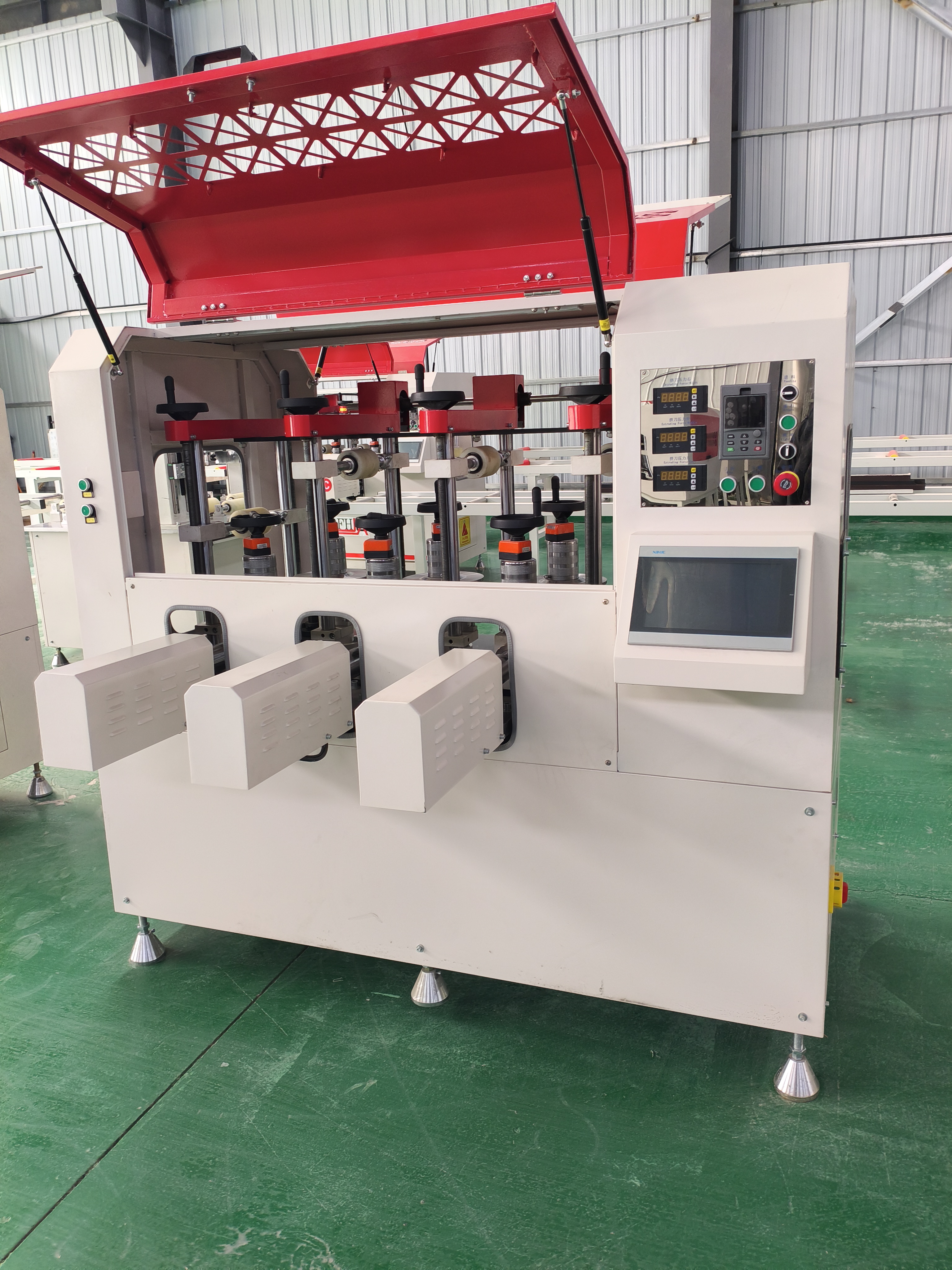 主要產(chǎn)品有:PVC/鋁窗門加工機器、幕墻制造機器、隔熱復(fù)合鋁型材加工機器、中空玻璃制造機器等。